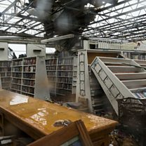 (Image: The inside of a damaged bookstore Rockport, Texas on 26th Saturday August 2017 following Hurricane Harvey hitting the Texas coast. Credit: Alex Scott/Bloomberg/Getty Images)
