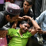 (Image: a demonstrator cries during a protest against the persecution of Muslim ethnic minority Rohingya in Myanmar. Credit: Mohd Rasfan/AFP/Getty Images)