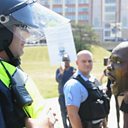 (Image: A man yells at a law enforcement officer during protests in St. Louis, Missouri. Credit: Getty Images)