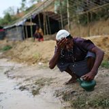 (Image: A Rohingya Muslim washes his face at a makeshift camp in Teknaff, Bangladesh on 23rd September 2017. Credit: Zakir Hossain Chowdhury/Anadolu Agency/Getty Images)
