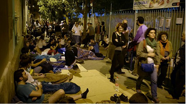 (Images: People outside a Barcelona polling station in a referendum on independence for Catalonia. Credit: Getty Images)