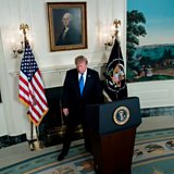 (Image: US President Donald Trump leaves after delivering a speech on the Iran deal. Credit: Getty Images)