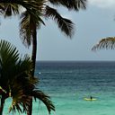 Image: tourists paddles by near a beach. Credit: Jewel Samad/AFP/Getty Images.