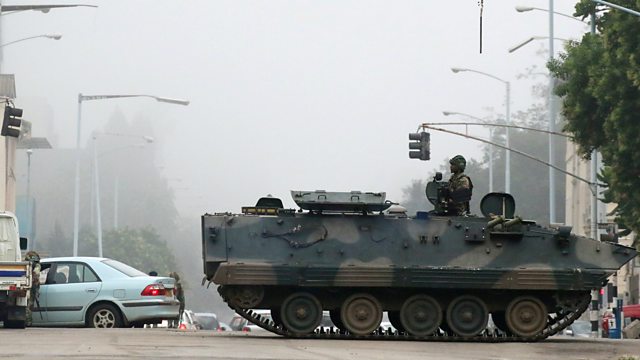 (Image: Military vehicles and soldiers patrol the streets in Zimbabwe's capital Harare. Credit: Reuters/Philimon Bulawayo)