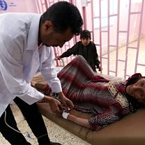 (Photo: A Yemeni woman receiving medical treatment. Credit: MOHAMMED HUWAIS/AFP/Getty Images)