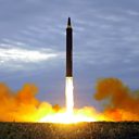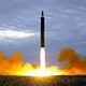 Image: North Korea's intermediate-range strategic ballistic rocket Hwasong-12. Credit: STR/AFP/Getty Images.
