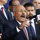 Picture: Yemen's ex-president Ali Abdullah Saleh gives a speech addressing his supporters during a rally on August 24, 2017. Credit: Mohammed Huwais/AFP/Getty Images)
