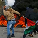 Picture: Palestinian protesters throw stones towards Israeli troops in the West Bank city of Ramallah on December 7, 2017. Credit: AFP Photo / Abbas Momani / Getty Images.