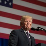 Image: US President Donald Trump speaks about his administration's National Security Strategy at the Ronald Reagan Building and International Trade Center in Washington, DC, December 18, 2017. Credit: Saul Loeb/AFP/Getty Images
