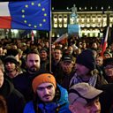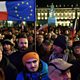 Picture: Protesters wave Poland and EU flags. Credit: Janek Skarzynski/AFP/Getty Images.