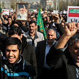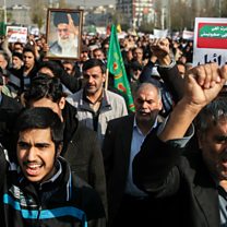 (Image: Iranians chant slogans as they march in support of the government near the Imam Khomeini grand mosque in the capital Tehran. Credit: Hamed Malekpour/AFP/Getty Images)