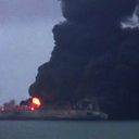 (Photo: Smoke and flames coming from a burning oil tanker at sea off the coast of eastern China. Credit: AFP/CCTV)