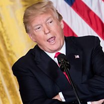 (Picture: US President Donald Trump during a press conference in the East Room of the White House in Washington, DC. Credit: AFP/Getty)
