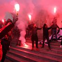 (Photo: Tunisian protesters light flares and shout slogans during a celebration to mark the seventh anniversary of the uprising that ousted president Zine El Abidine Ben Ali on Avenue Habib Bourguiba in Tunis. Credit: EPA/Mohamed Messara)