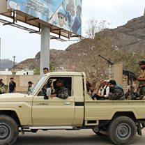 (Image: Fighters from Yemen's southern separatist movement gather in an Aden street. Credit: Saleh Al-Obeidi/Getty Images)