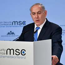 (Picture: Israeli Prime Minister Benjamin Netanyahu delivers a speech at the Munich Security Conference. Credit: THOMAS KIENZLE/AFP/Getty Images)