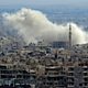 Picture: A general view taken from a government-held area in Damascus shows smoke rising from the rebel-held enclave of Eastern Ghouta. Credit: Stringer/AFP/Getty Images.