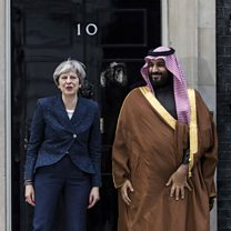 The UK prime minister, Theresa May, has defended her government's relations with Saudi Arabia, at the start of a visit by Crown Prince Mohammed bin Salman. The opposition leader, Jeremy Corbyn, had accused her government of colluding in war crimes in Yemen by backing Saudi Arabia's campaign there against Houthi rebels.