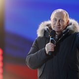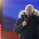 Image: Russia's President Vladimir Putin delivers a speech during a rally at Manezhnaya Square near the Kremlin in Moscow Credit: EPA