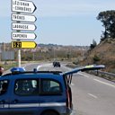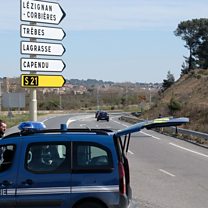 Picture: French gendarmes block access to Trèbes, where a man took hostages at a supermarket on March 23, 2018 in Trèbes, southwest France. Credit: AFP/Getty Images