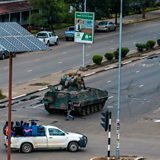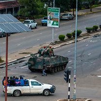(Photo: An armoured personnel carrier in Harare Credit:Jekesai Njikizana/AFP/Getty Images)