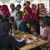 (Photo: Rohingya Muslims queuing for aid. Credit: Getty Images)