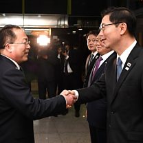 Next month's Winter Olympics in South Korea will have both sides of the Korean border marching together under the 'united' flag. This has come from the first high-level talks between the Koreas in more than two years. Also, we hear from Barcelona - can a leader who is in exile be chosen as President? Carles Puigdemont is in Belgium and would be arrested on his return to Spain. And why has cheating in exams been trending on Kenyan Twitter? (Photo:South Korean Vice Unification Minister Chun Hae-Sung, (R) shakes hands with the head of North Korean delegation Jon Jong-Su (L). Credit: Getty Images)