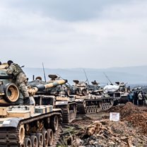(Photo: Turkish army troops gather near the Syrian border. Credit: Getty Images)