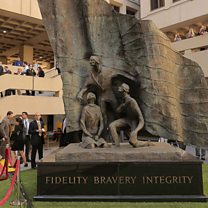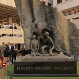 Picture: The statue Fidelity, Bravery, Integrity in the middle of the courtyard at the FBI's HQ. (Chip Somodevilla/Getty Images)