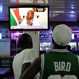 (Photo: People watch President Zuma speaking on television. Credit: Phill Magakoe/AFP/Getty Images)