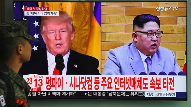After months of mutual hostility North Korean leader Kim Jong-un and US President Donald Trump are to meet in person by May. A BBC Korea reporter in Seoul brings us the South Korean reaction. Also, Kenyan president, Uhuru Kenyatta, and the opposition leader, Raila Odinga, have promised to begin a process of reconciliation after last year's bitterly contested election - we update you on that. And according to the New York Times Barack Obama is in talks with Netflix to produce a series of talks. It's all about leaders an former leaders on today's programme! (Photo: A South Korean soldier walks past a television screen in Seoul showing US President Donald Trump and North Korean leader Kim Jong Un. Credit: Getty Images)