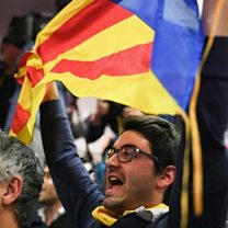 (Picture: Carles Puigdemont's supporters in Barcelona cheered his broadcast from Belgium Credit: Reuters)