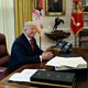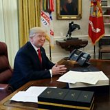 (Picture: Mr Trump sits at the White House Resolute Desk in the Oval Office Credit: Getty Images)