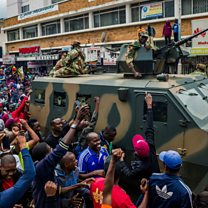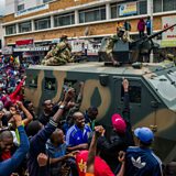(Photo: People cheer a military vehicle during a demonstration demanding the resignation of President Mugabe on November 18, 2017 in Harare, Credit: JEKESAI NJIKIZANA/AFP/Getty)