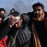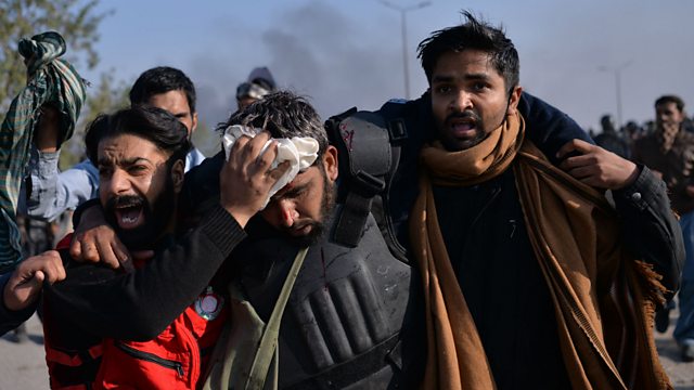 (Photo: Pakistani policemen carry an injured colleague during clashes, Credit: Aamir Qureshi/AFP/Getty Images)