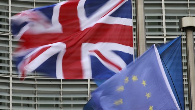 (Photo: British and European flags in front the European Commission headquarters in Brussels, Belgium. Credit: EPA/Oliver Hoslet)