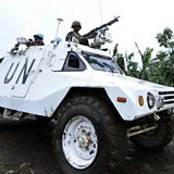 ( Picture: UN armoured personnel carrier patrols in DR Congo. Credit: Getty/AP.)
