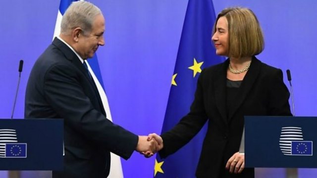 (picture: Benjamin Netanyahu and Federica Mogherini Credit: AFP)