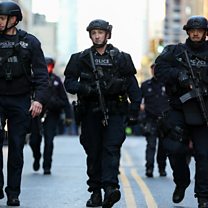 (Photo: Police patrol near site of blast in Manhattan. Credit: Reuters/Amr Alfiky)