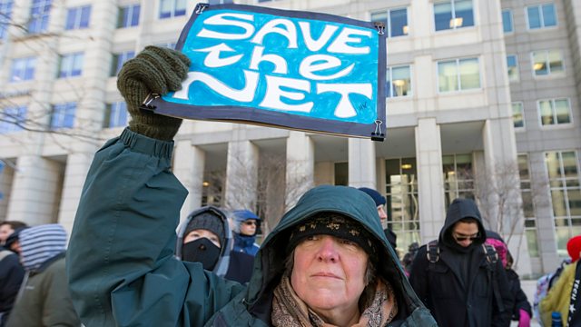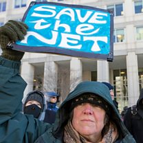 ( Picture: A protestor at a demonstration against repealing net neutrality. Credit: AFP.)