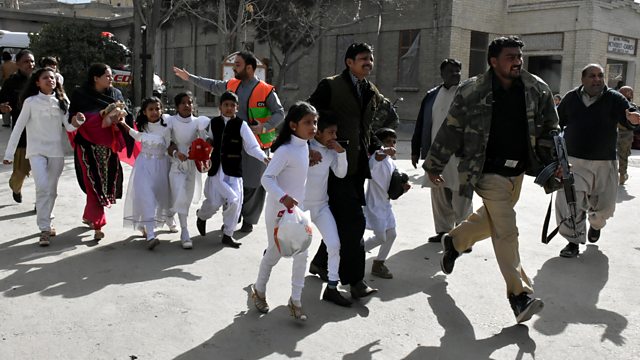 At least eight people are killed and dozens injured in the attack in Quetta. The Methodist church was full of worshippers when it was stormed by two militants. Also: ANC delegates are expected to vote for the new leader of South Africa's governing party, Australian police charge a man accused of brokering missile and military expertise sales from North Korea, and the US defence department acknowledges running a secret multimillion dollar programme to investigate UFOs.
