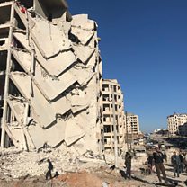 (Image: Damaged buildings in Idlib Jan 8th 2018. Credit: AFP)