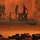 (Picture: Tunisian protestors throw stones towards security forces in Tunis, Credit: Sofiene Hamdaoui/AFP/Getty)