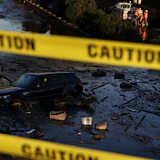 (Picture: A car sits in mud and debris on Highway 101 in California, Credit: Justin Sullivan/Getty)
