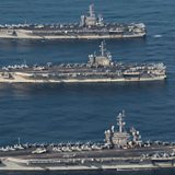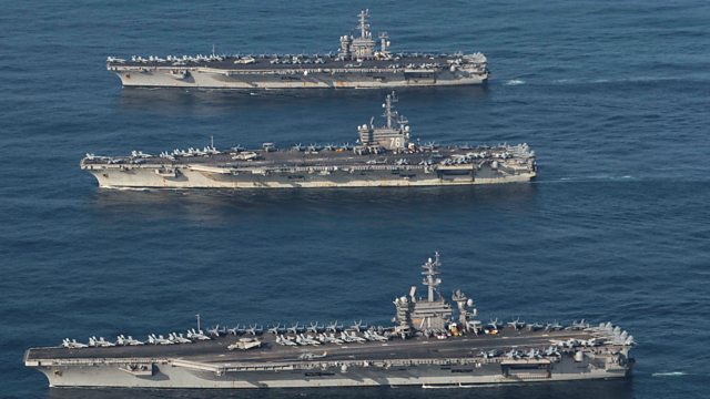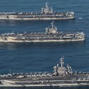 ( Picture: US aircraft carriers on exercise in western Pacific. Credit: Reuters.)