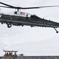 (Photo: A helicopter carrying US President Donald Trump lands in Davos. Credit: EPA)