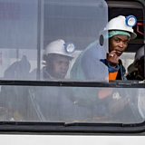 (Picture: Miners who were trapped underground in South Africa are transported to a safe holding area.