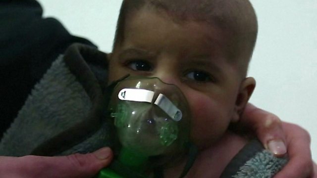 (Photo: a child being treated in hospital in eastern Ghouta for breathing difficulties; credit: AFP)