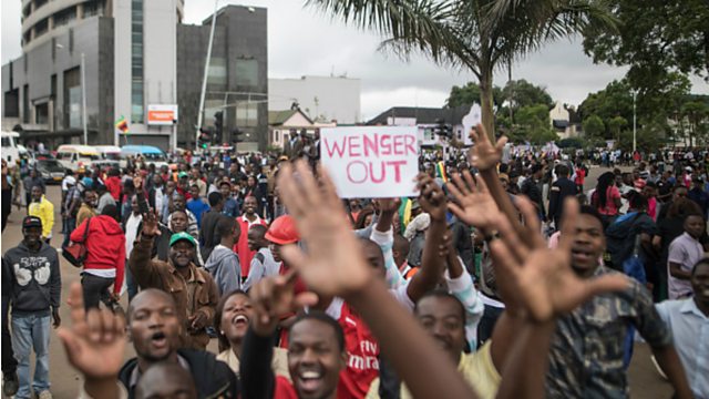 (Image: People demonstrating and demanding the resignation of Zimbabwe's President Mugabe. Credit: Getty Images)