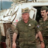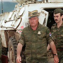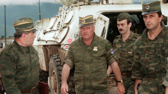 (Images: General Ratko Mladic (centre) arrives at the airport of Sarajevo, Bosnia on 10th August 1993. Credit: Gabriel Bouys/AFP/Getty Images)